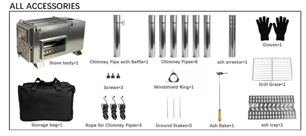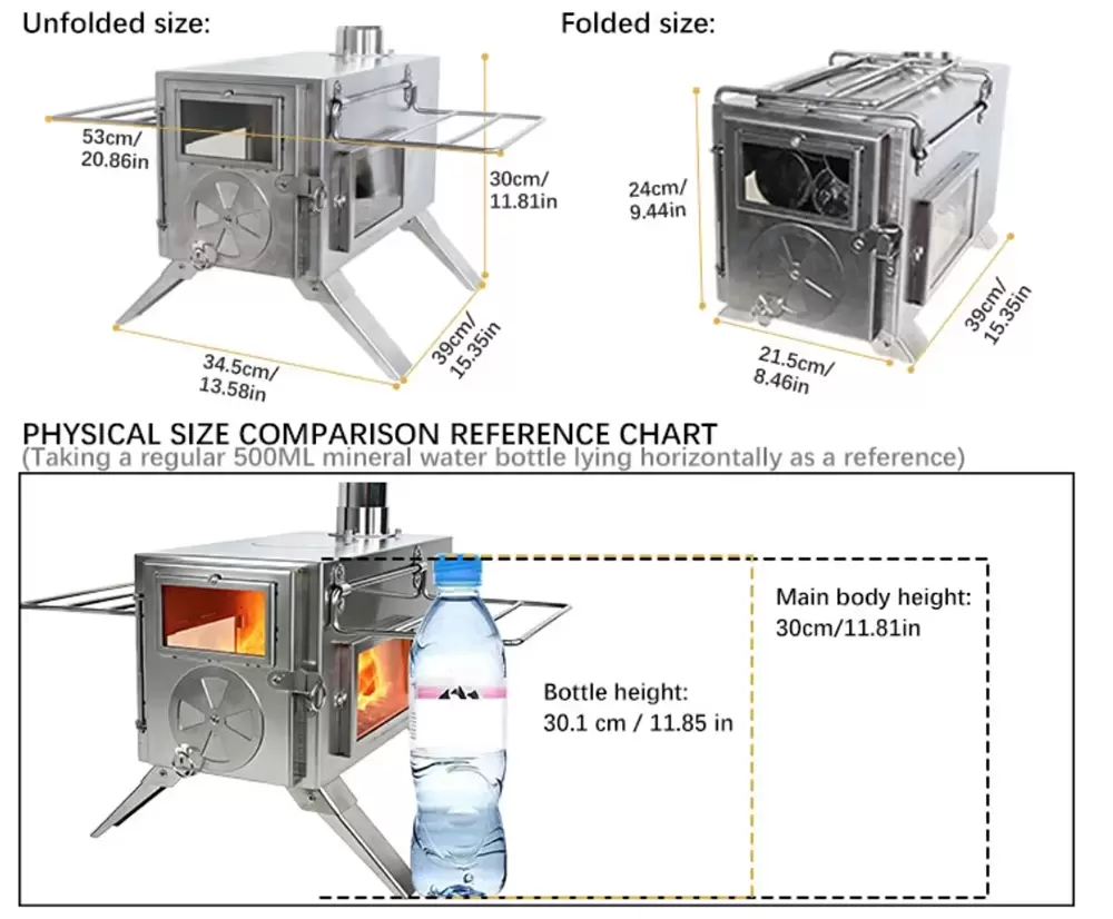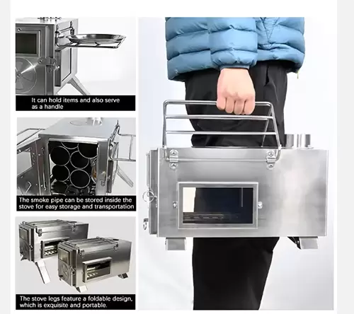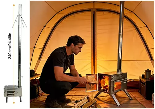 Clean combustion technology: Featuring professional sealing design and elevated chimneys, it ensures efficient combustion and significantly reduces smoke, making it ideal for users with high standards for air quality and safety in tents.